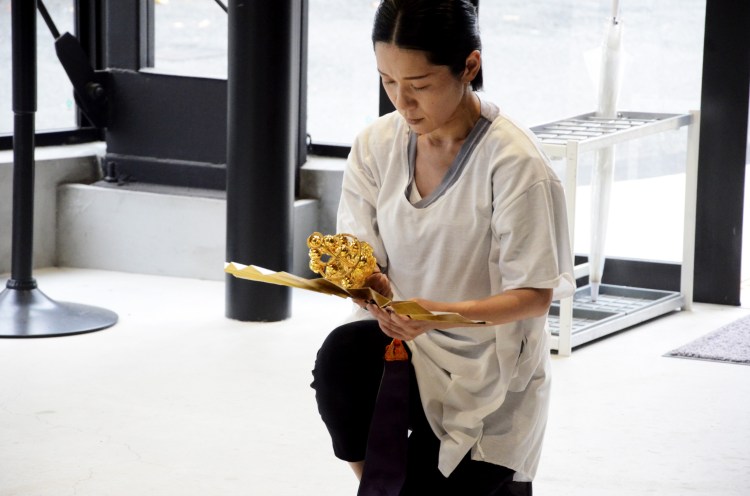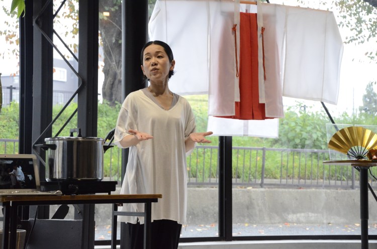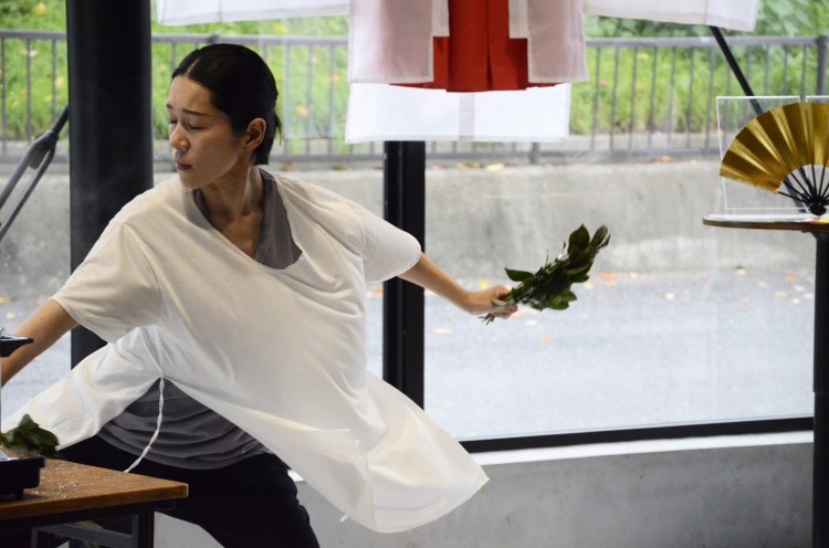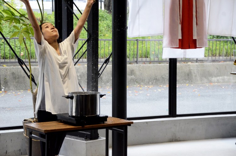 そして、劇場に集まってくださる皆さん、スタッフの方、地域の方と心穏やかに輪を作ってみたい。私にはそういうことが必要だし、劇場がつづいていく、表現がつづいていくことにも必要なことだと信じています。そのあとは、京都の水や地層にまつわる歴史や私の個人史を交えつつお話し、舞の部分は、全国の湯立神楽の舞の型を抽出してバラバラにし再構成しました。