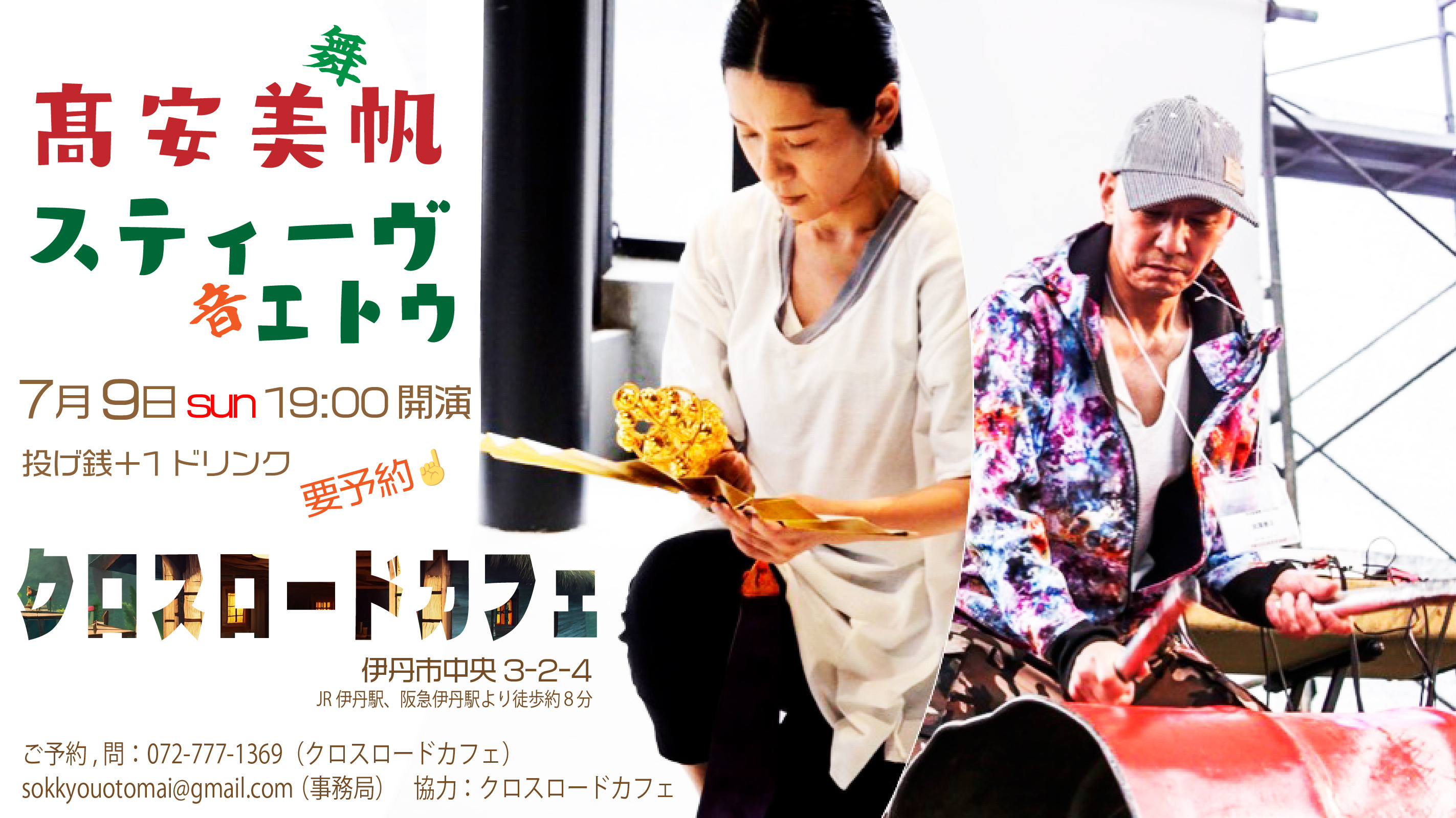 音と舞による即興パフォーマンスです。スティーヴ エトウの自由自在な打楽器演奏と、髙安美帆の神楽の型を組み合わせて舞う神楽remix勝手舞。2人ともにご縁のある伊丹で一夜限りのパフォーマンスをします。さて、当日はどんなことになるのやら。お楽しみに!