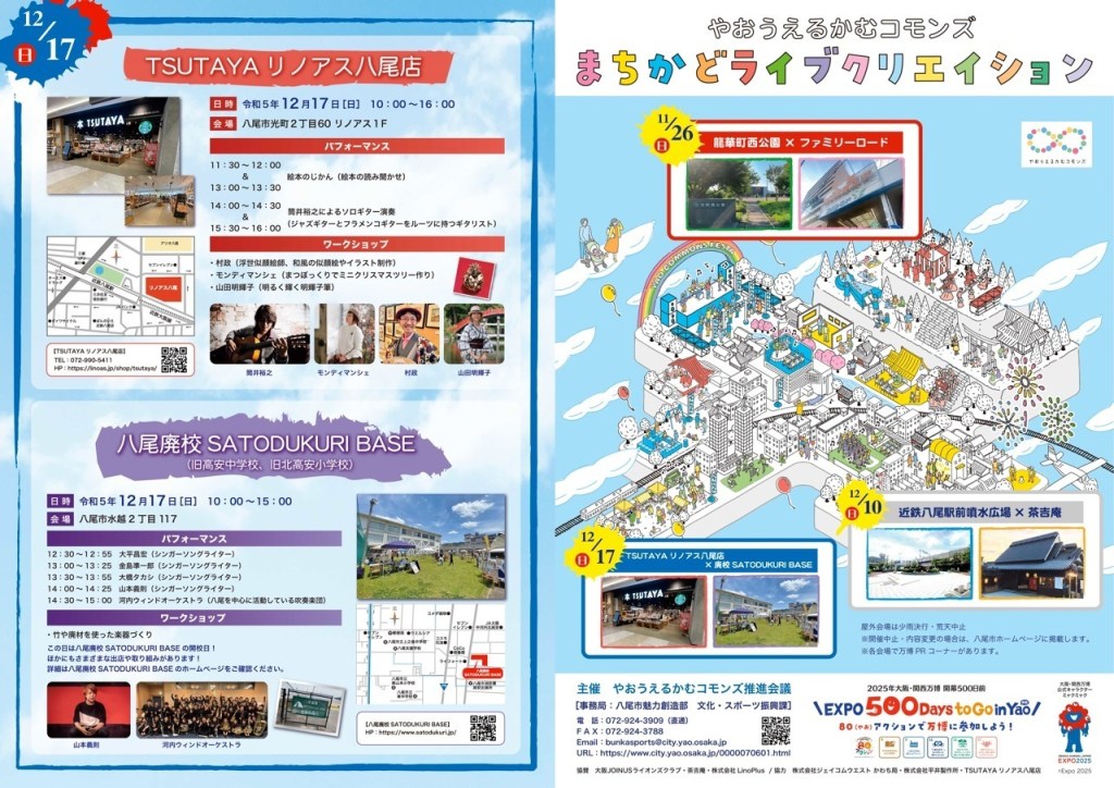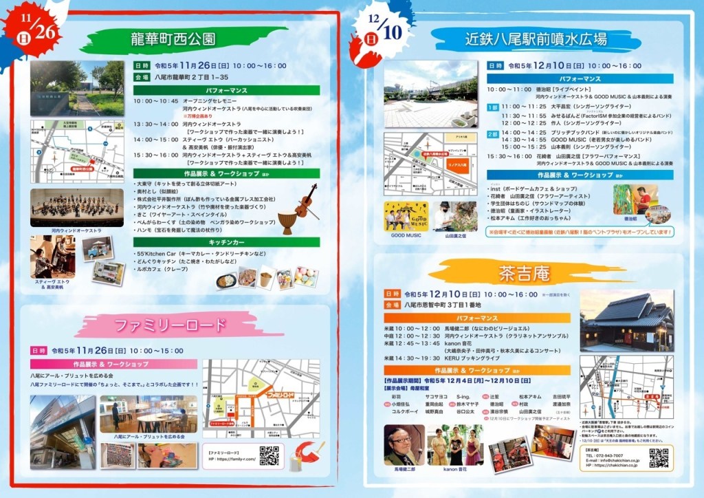 そのほかの日程は、場所は以下の通り。八尾市民、八尾に縁のある様々なジャンルのアーティストが集ます↓↓↓