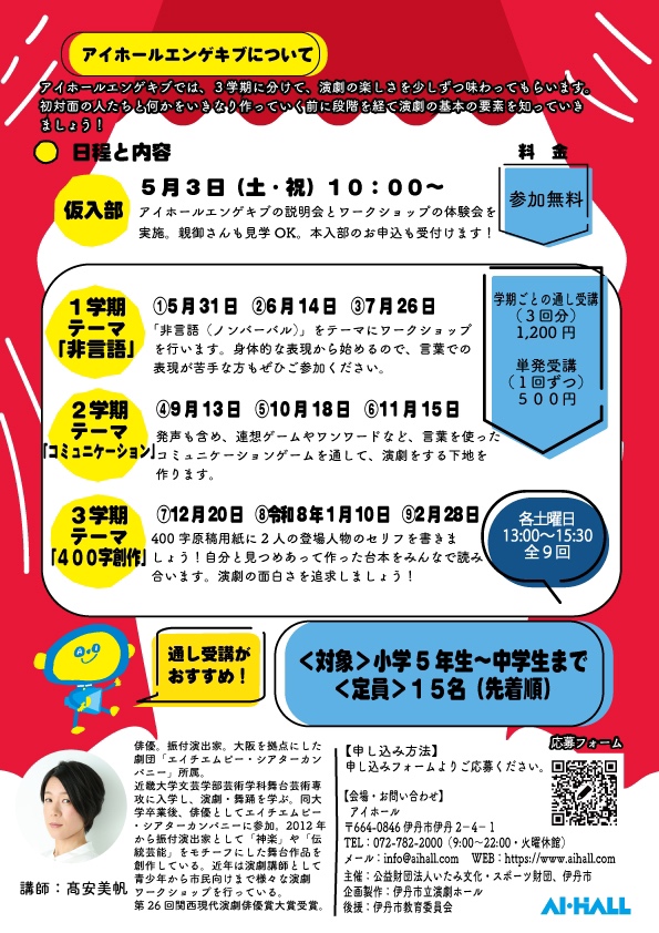 アイホールエンゲキブとは、小学校5年生~中学生を対象にした演劇WSです。