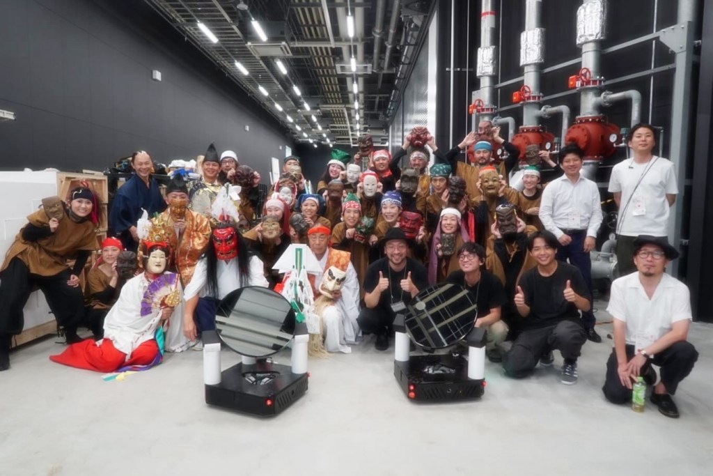 TriOrbによる最新の工業用ロボット+anno laboクリエイティブチームによる音と映像+登録無形文化財の高千穂&豊前神楽+由布院 空想の森美術館所属の仮面の数々!
