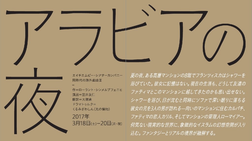 2014年度に演出・笠井友仁が文化庁芸術祭新人賞を受賞した「アラビアの夜」。